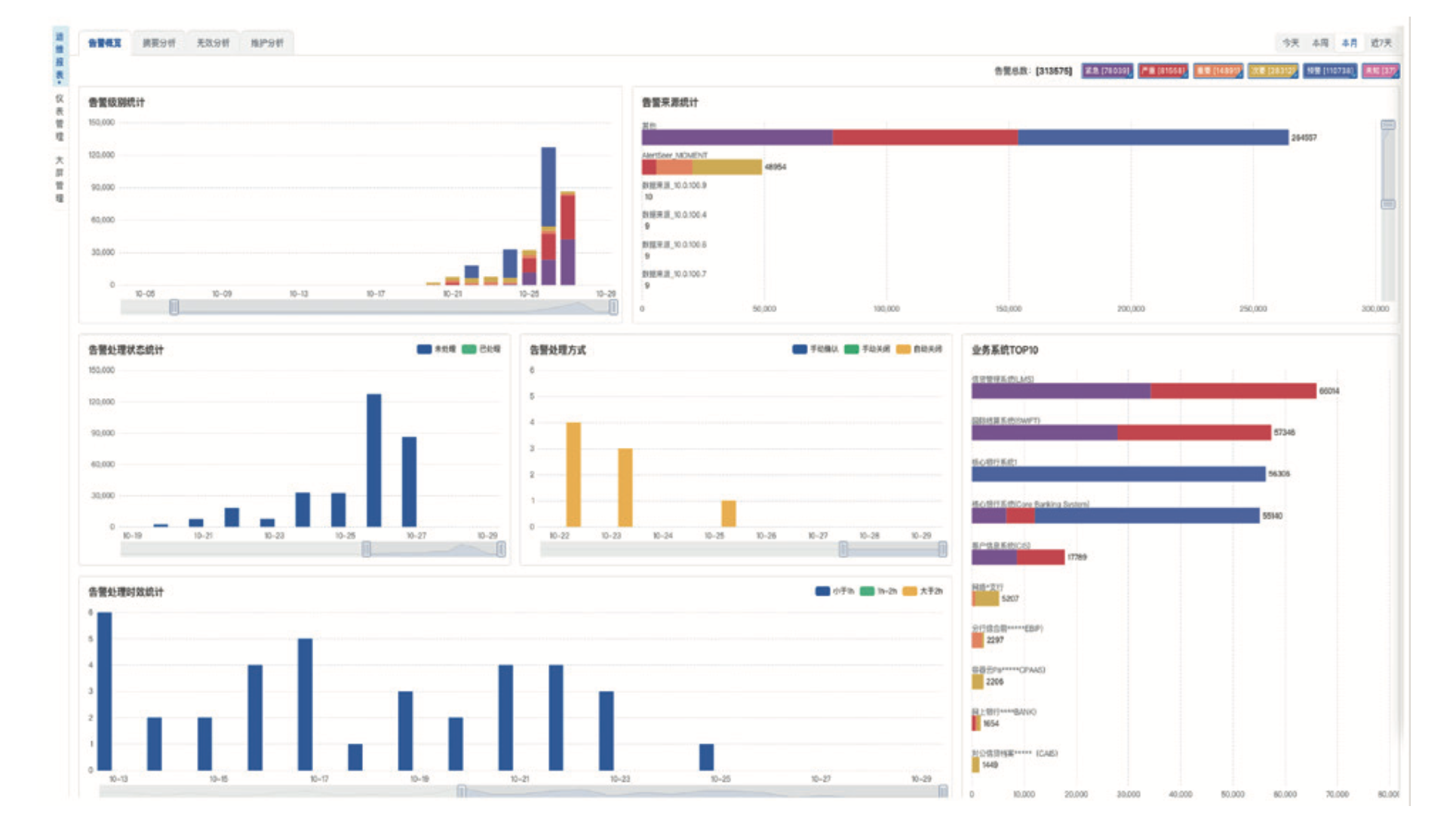 实际告警质量层次不齐,通过必示告警管理系统的运营统计功能,提供开箱即用的日、周、月级别的告警运营报表,分析 定位哪些告警源、应用的告警数量多,推动从源头治理减少80%以上的告警噪声。